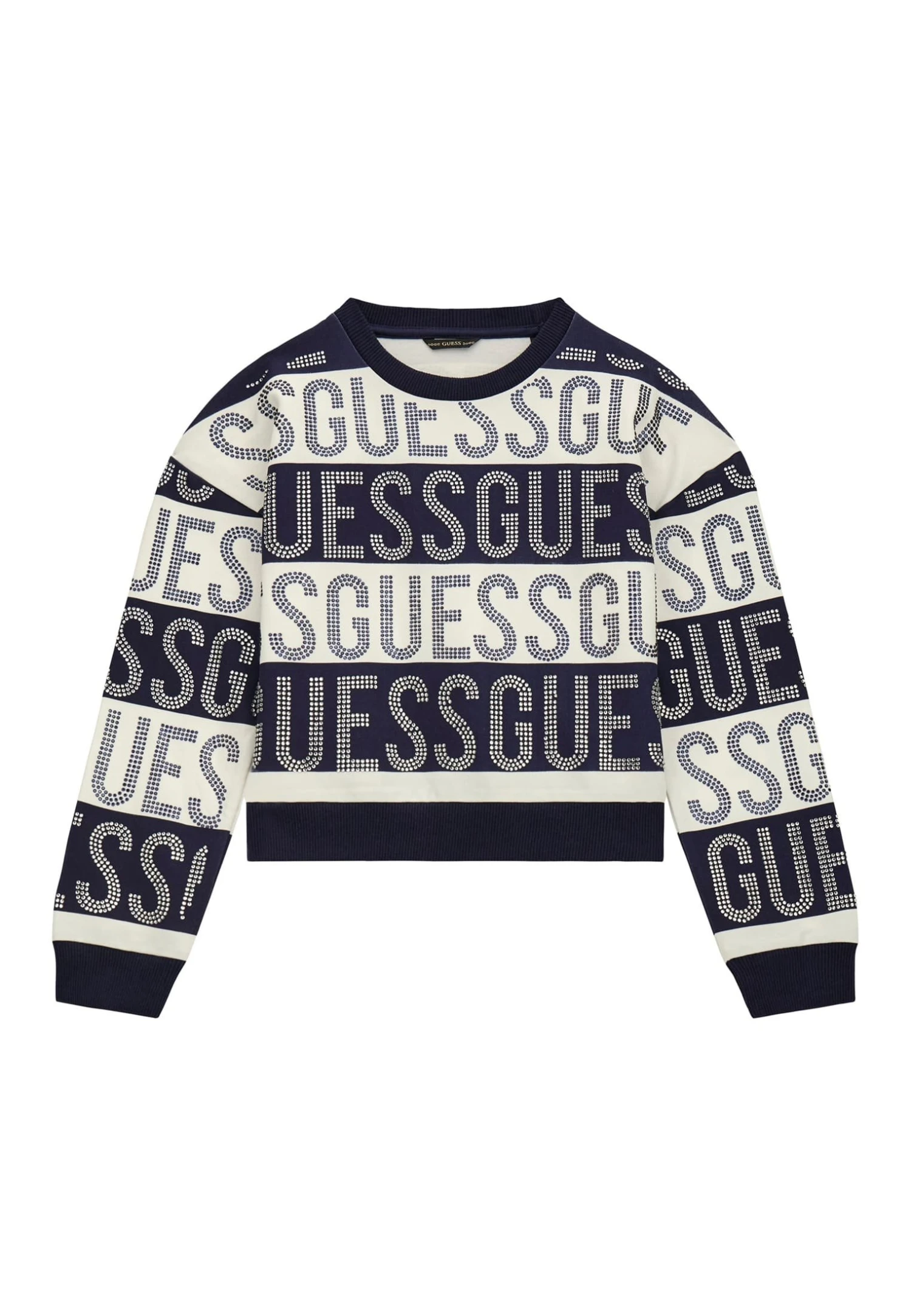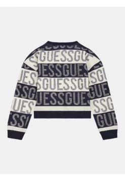 Guess Allover-Strass-Logo – Sweater – MehrfarbigGrundton Blau