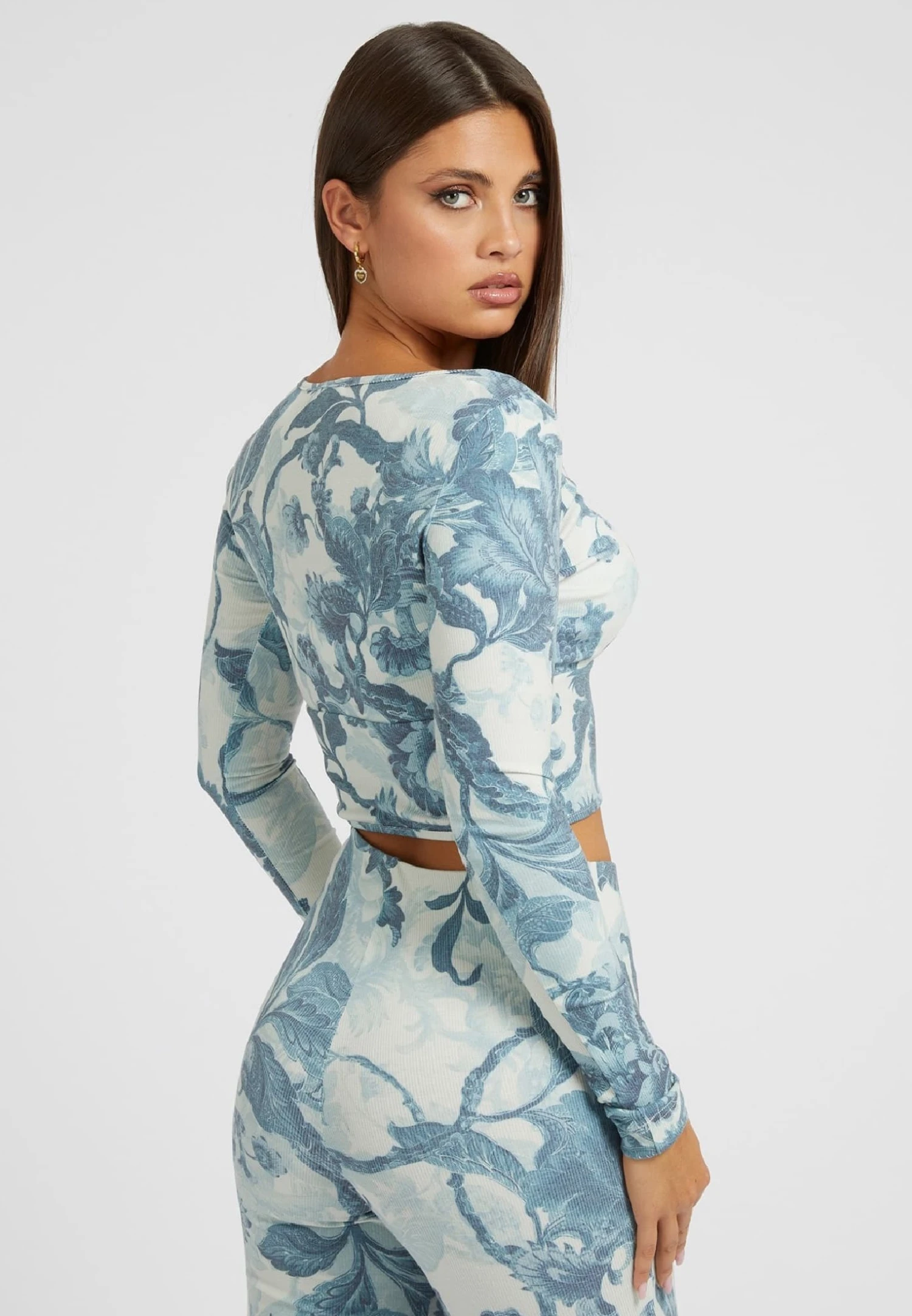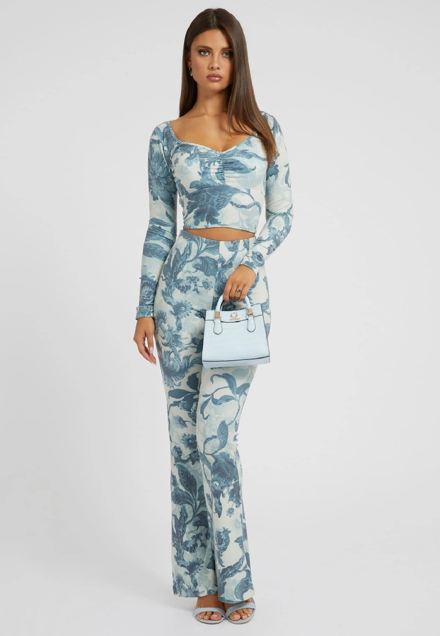 Guess Mit Blumenprint – Longsleeve – Himmelblau