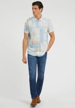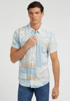 Guess Mit Patchwork-Print – Overhemd – Mehrfarbig/Grundton Blau