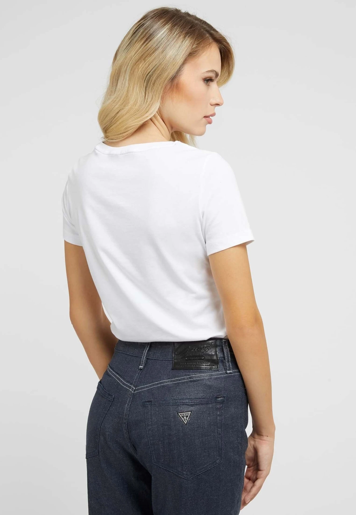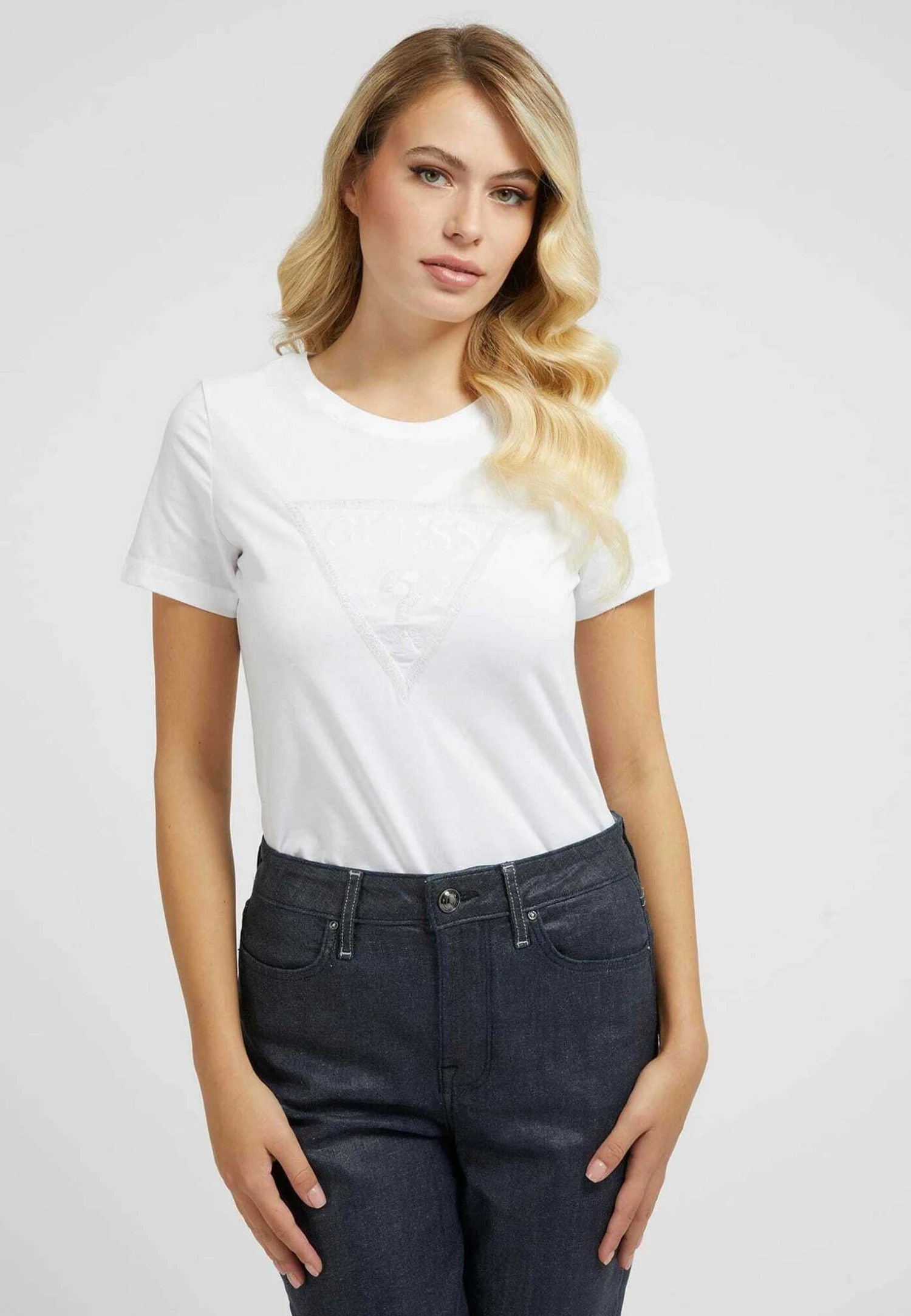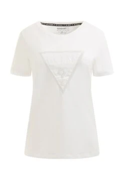 Guess Mit Präge-Logodreieck – T-Shirt Basic – Weiß