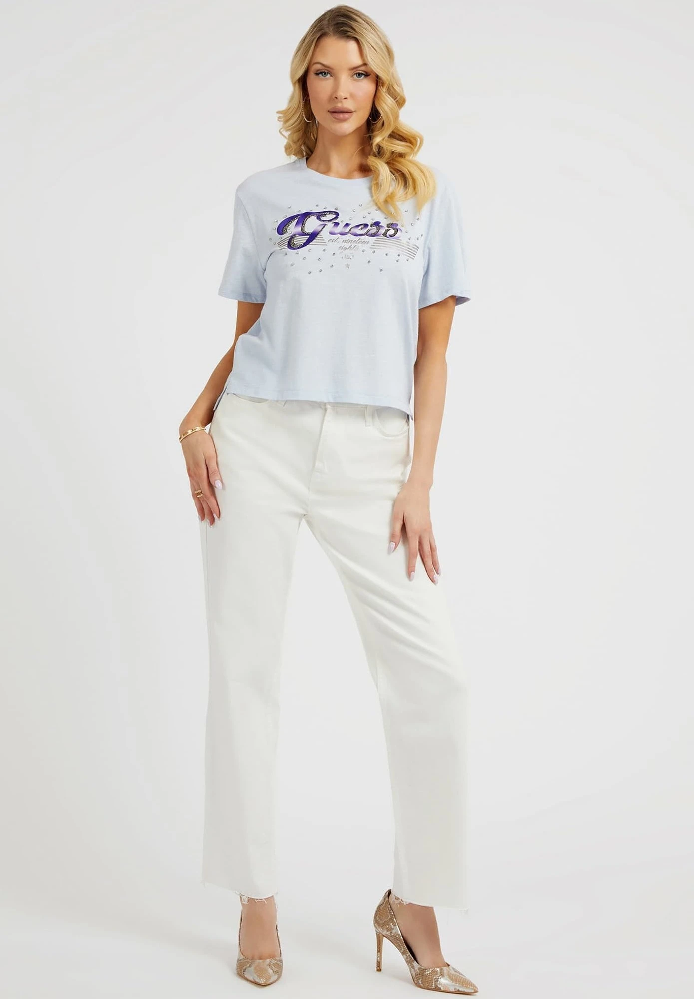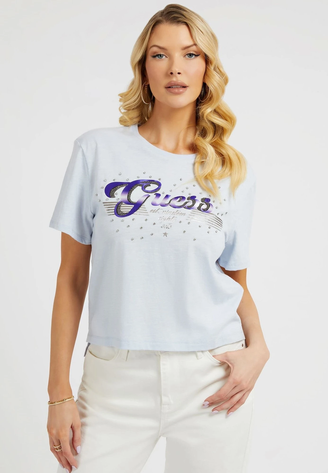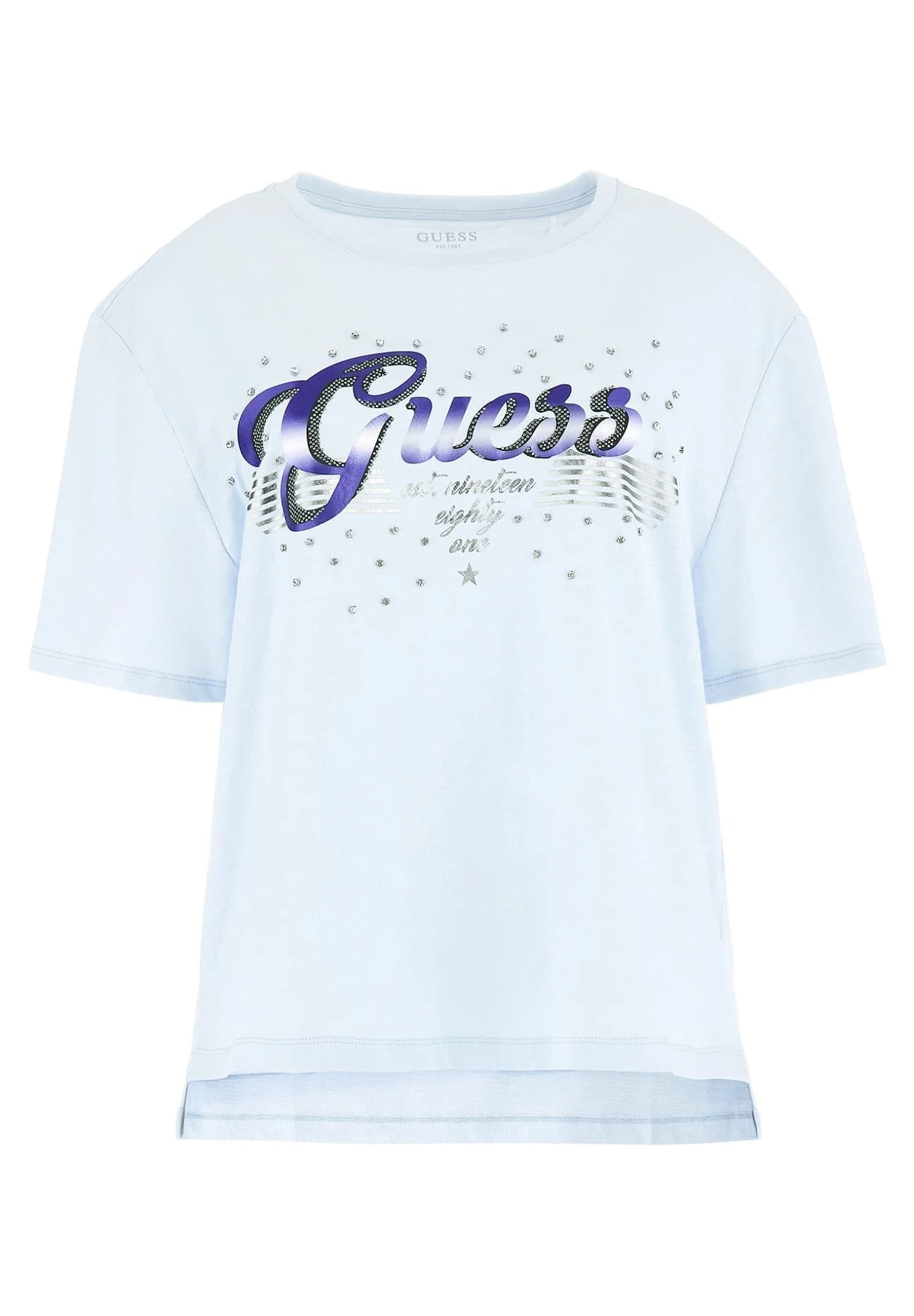 Guess Mit Strass Logo – T-Shirt Print – Himmelblau