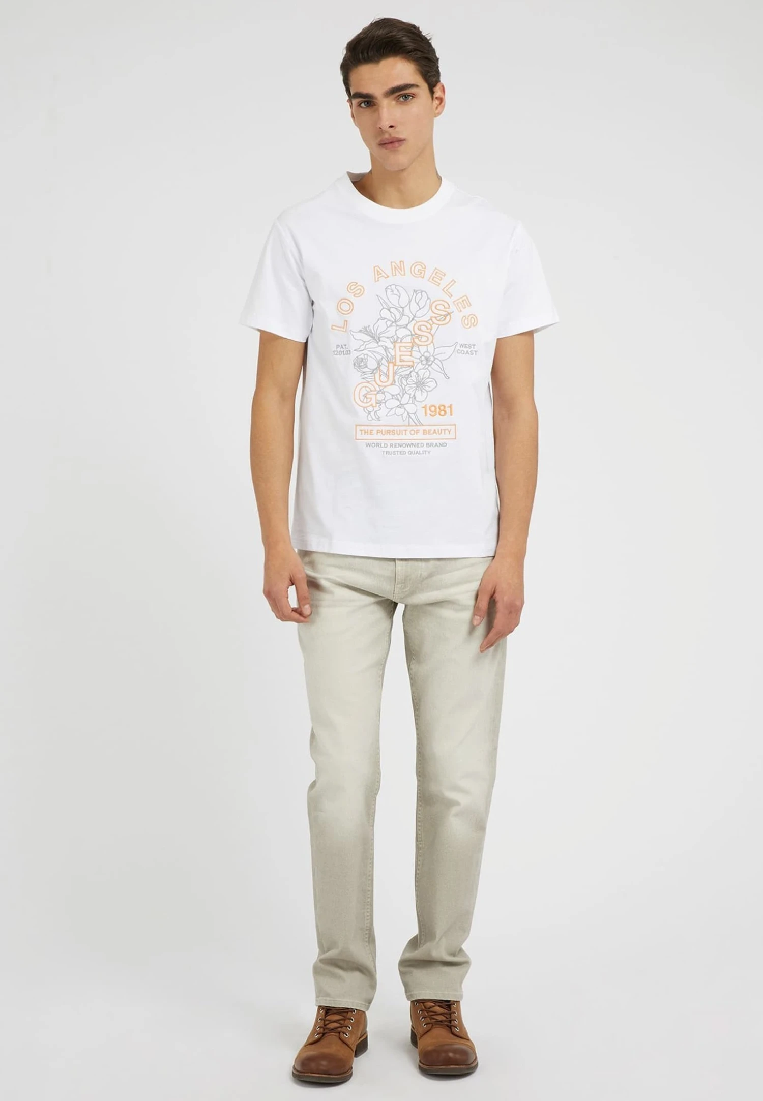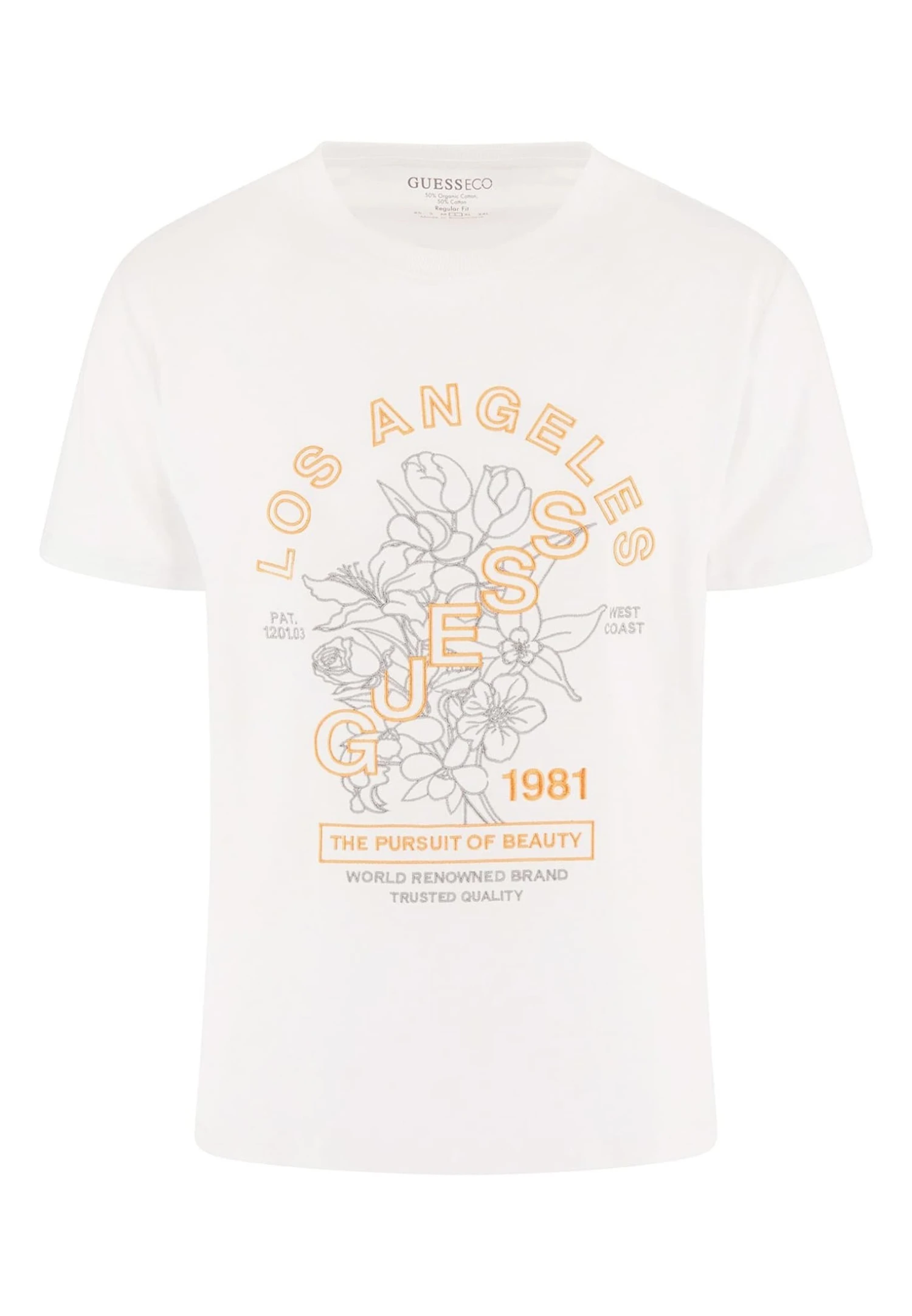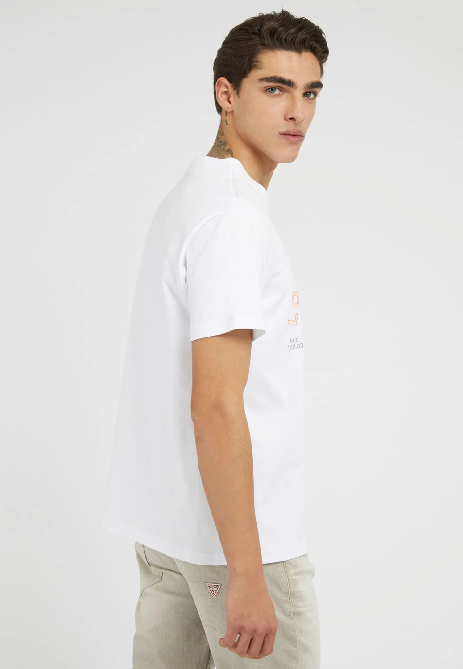 Guess Stickerei Auf Der Vorderseite – T-Shirt Print – Weiß